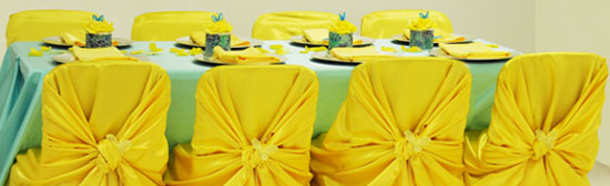 Chair Covers & Sashes, Linen, Lighting, Columns, Table Centerpieces, Tables, Chairs, China and Silverware are available for rental.