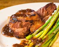 Stuffed w/Boursin Cheese Puff Pastry, Fresh Garden Salad or Caesar Salad, Choice of 1 Entrée/Two Entrées w/Buffet, Perite Filet and 4oz